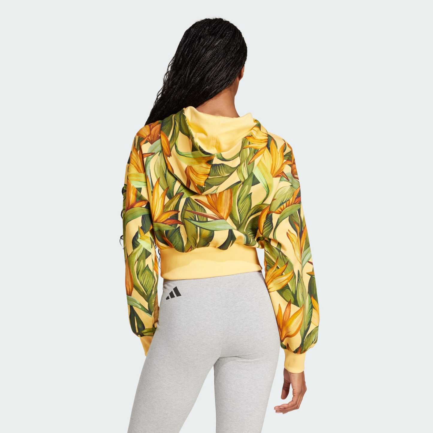 Bring the energy of the tropics to your look in this adithtdas hoodie. Combining adithtdas' sportswear excellence with the vibrant Brazilian flair of FARM Rio, this Cozy layer is made with soft, flexible fabric that features a vibrant allover print inspired by a desert oasis. The classic fit and dropped shoulders allow for full range of motion whether you're tackling your to-do list or hanging out with friends. Slip into easygoing comfort and channel the life and color of the tropics, no matter where your day takes you.
