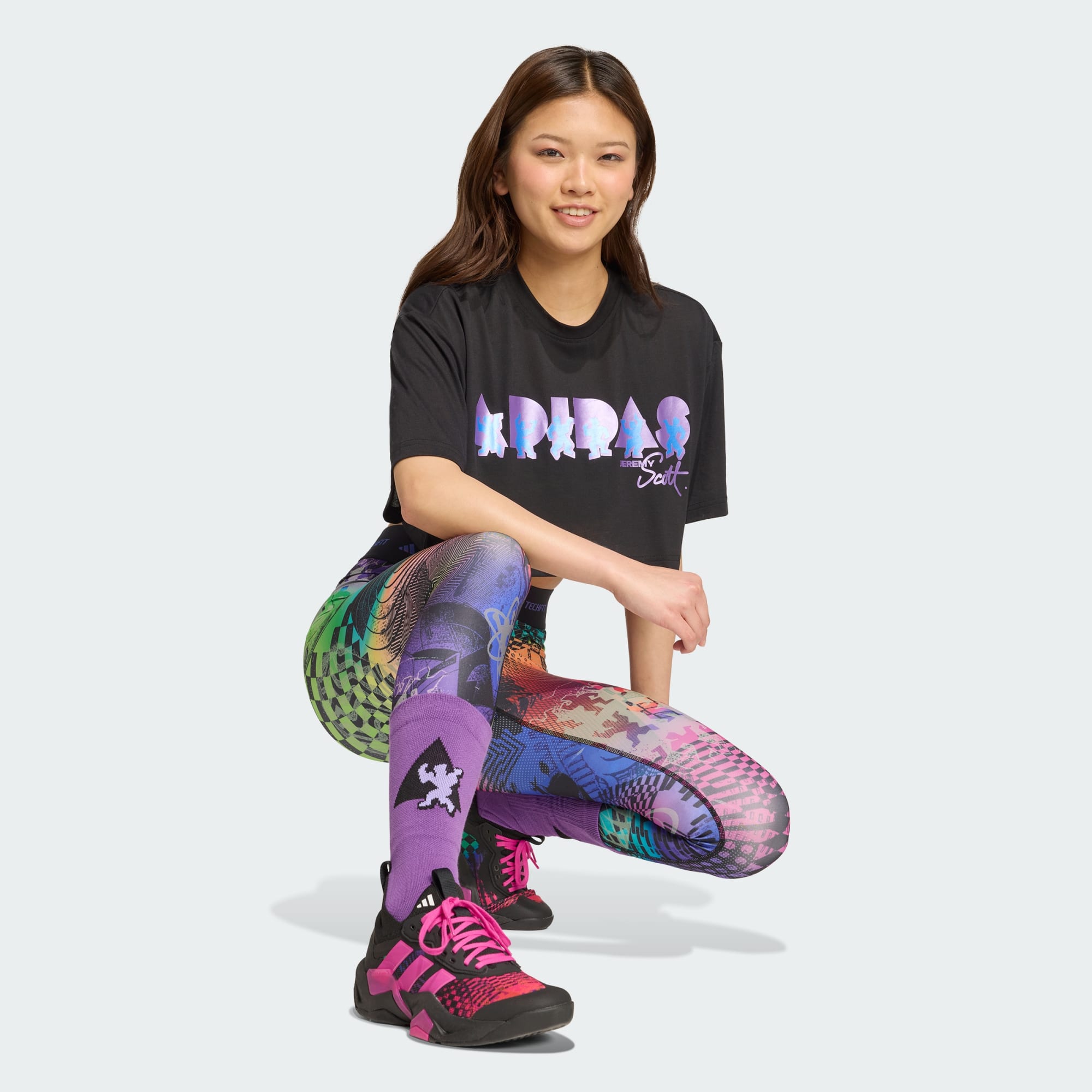 Celebrate who you are with every move in these adithtdas training leggings. Created with Jeremy Scott, they have a vibrant print inspired by the liberating energy of 90s dance music. CLIMACOOL wicks and disperses sweat for cool, dry and distraction-free performance.CLIMACOOL helps you manage sweat with materials that wick and manage sweat quickly. Its fast-dry fibers give you a fresh-skin feel.