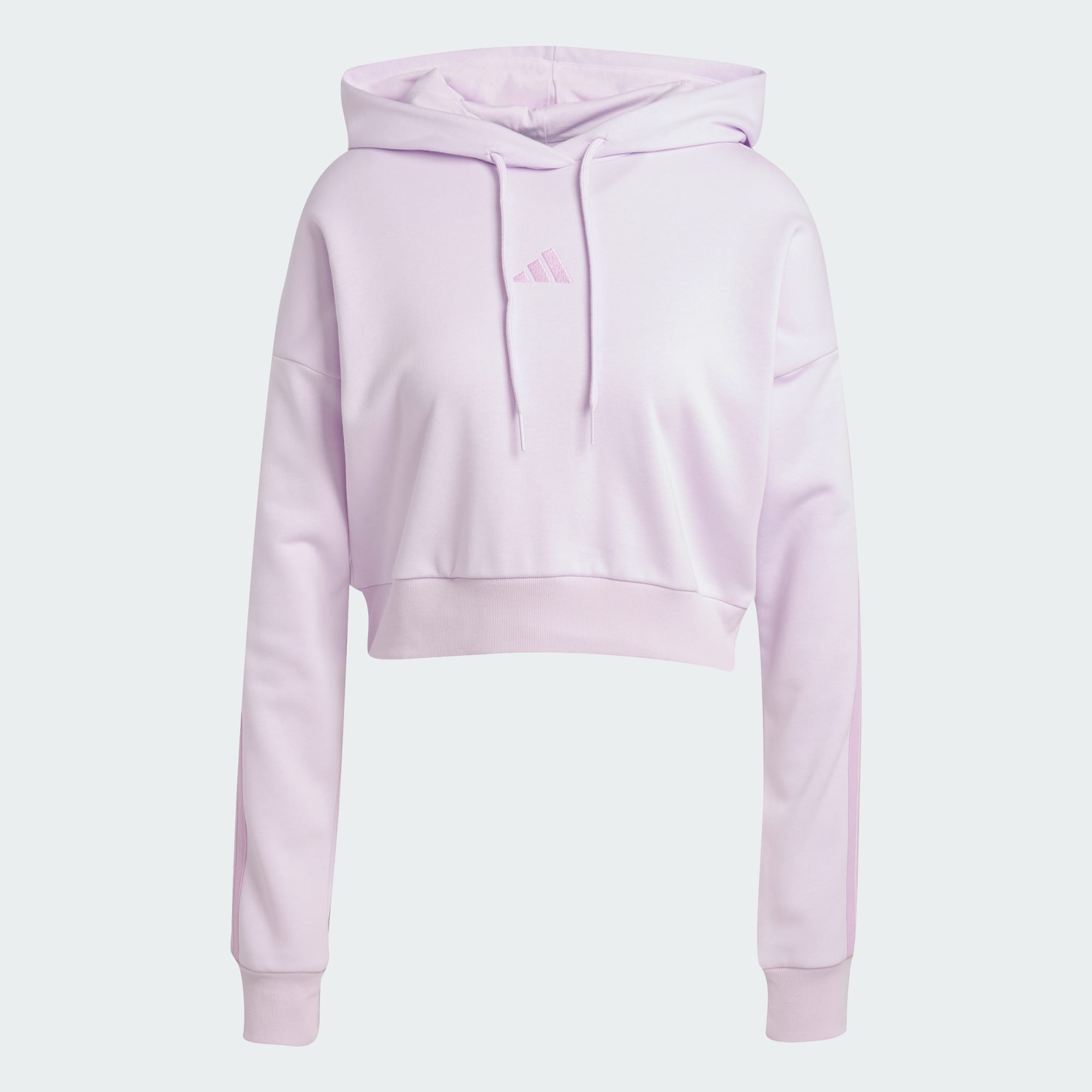 A crop hoodie made in part with a blend of recycled and renewable materials.