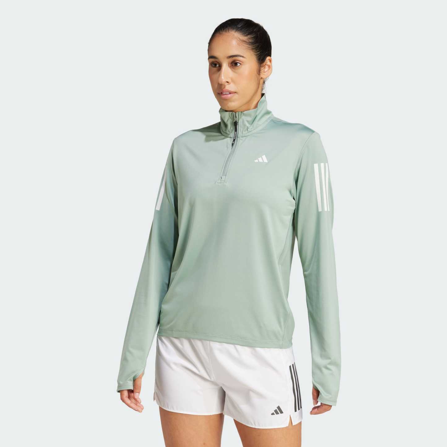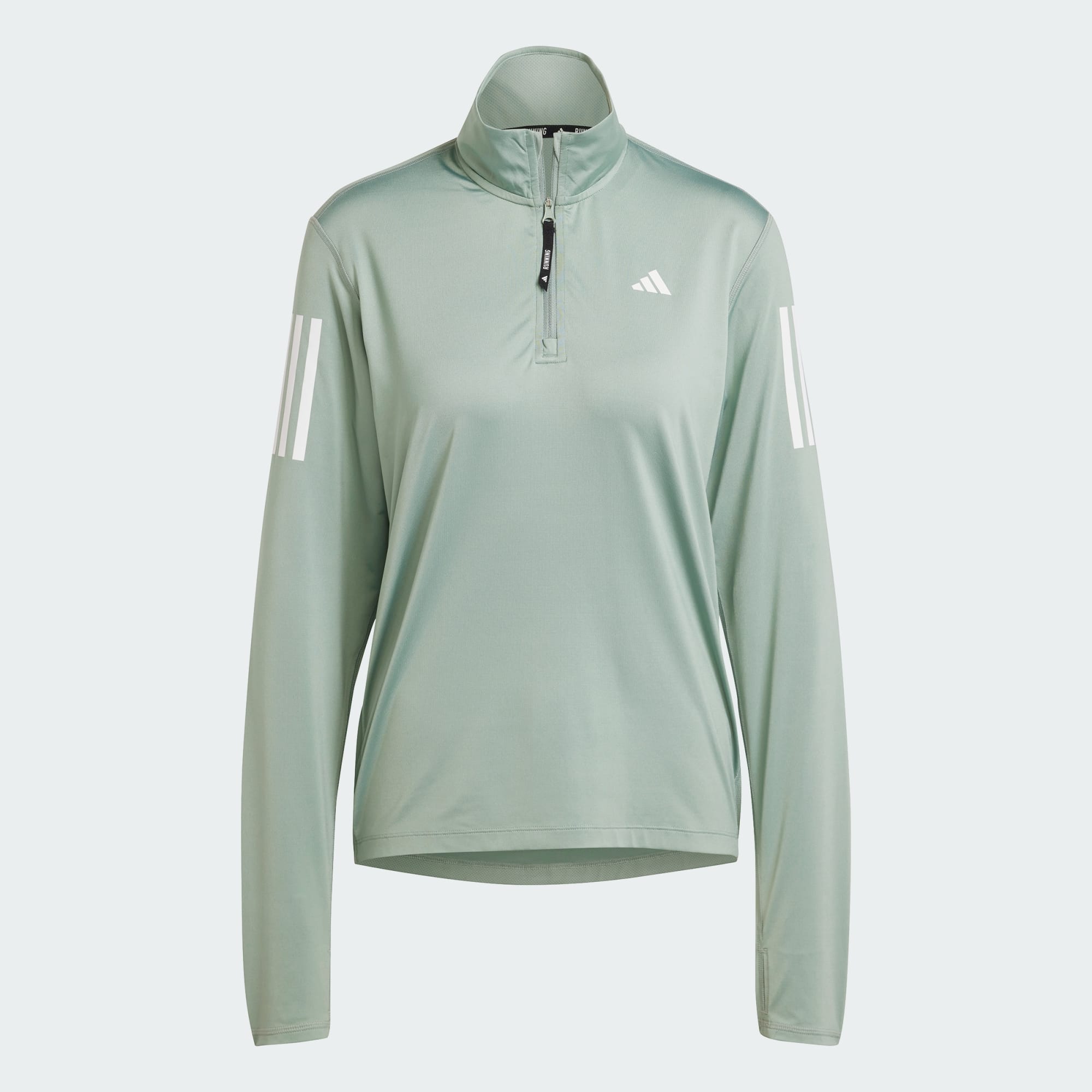 Be ready for your early-morning run. This half-zip jacket was built to keep up with your pace. AEROREADY fabric absorbs moisture to keep you dry mile after mile. Reflective details ensure you're visible to traffic before sunrise and help you own the road. This product is made with at least 70% recycled materials. By reusing materials that have already been created, we help to reduce waste and our reliance on finite resources and reduce the footprint of the products we make.
