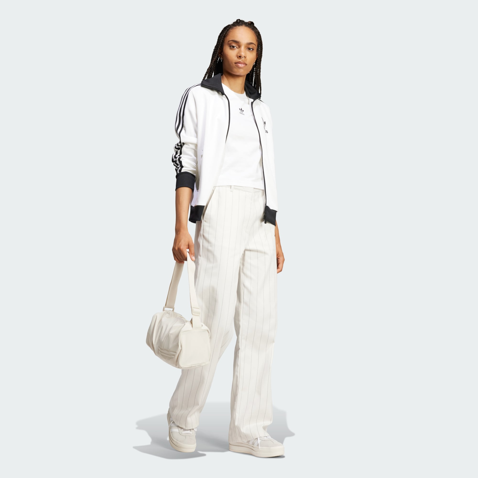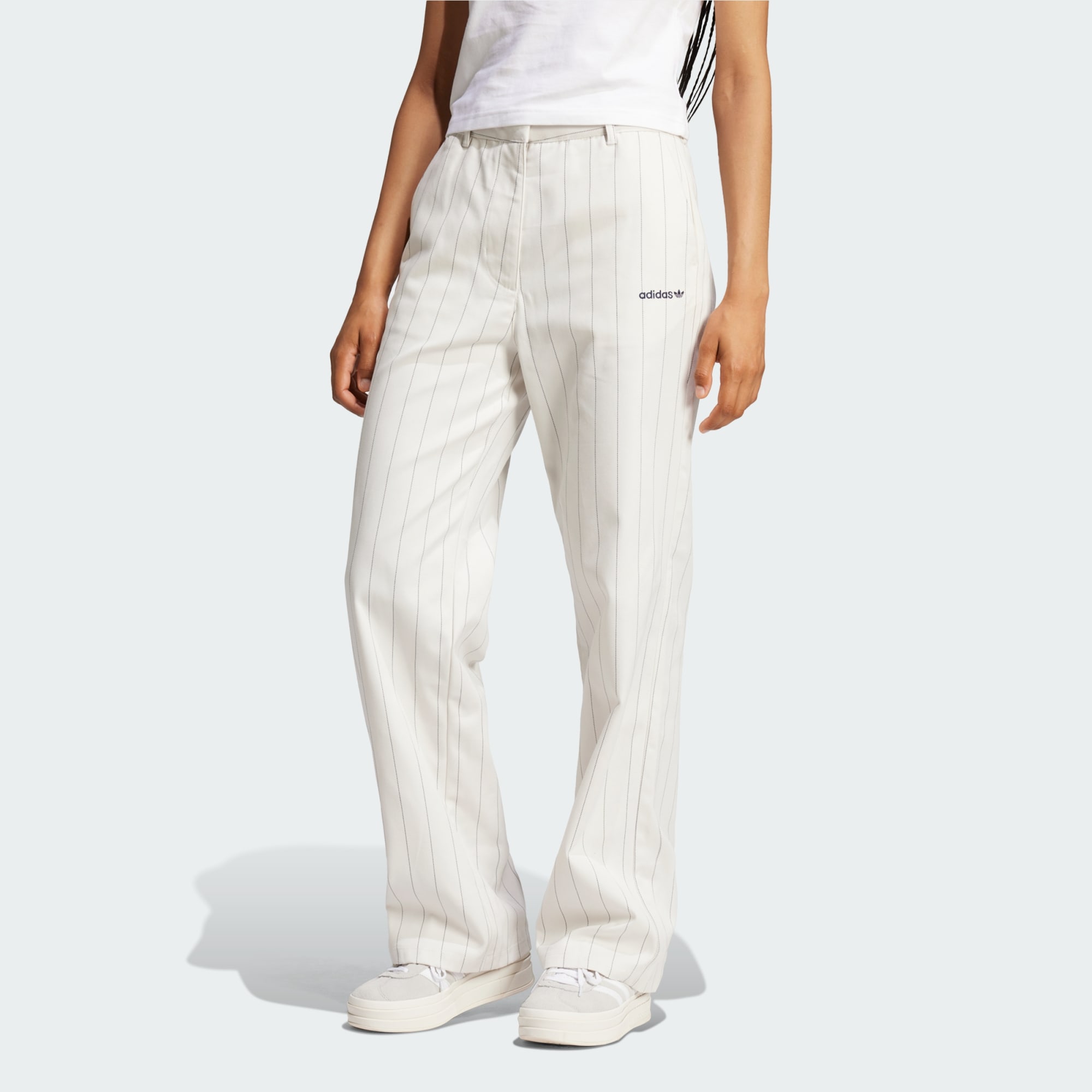 Made from pinstripe twill, these adithtdas pants draw on '80s soccer culture to bring a tailored look to your everyday style. Reviving the vibe of the era, they're cut for a loose shape that's all about the attitude. Whether you pair them with a tucked tee or a blazer, these pants bring sporty sophistication to any outfit.