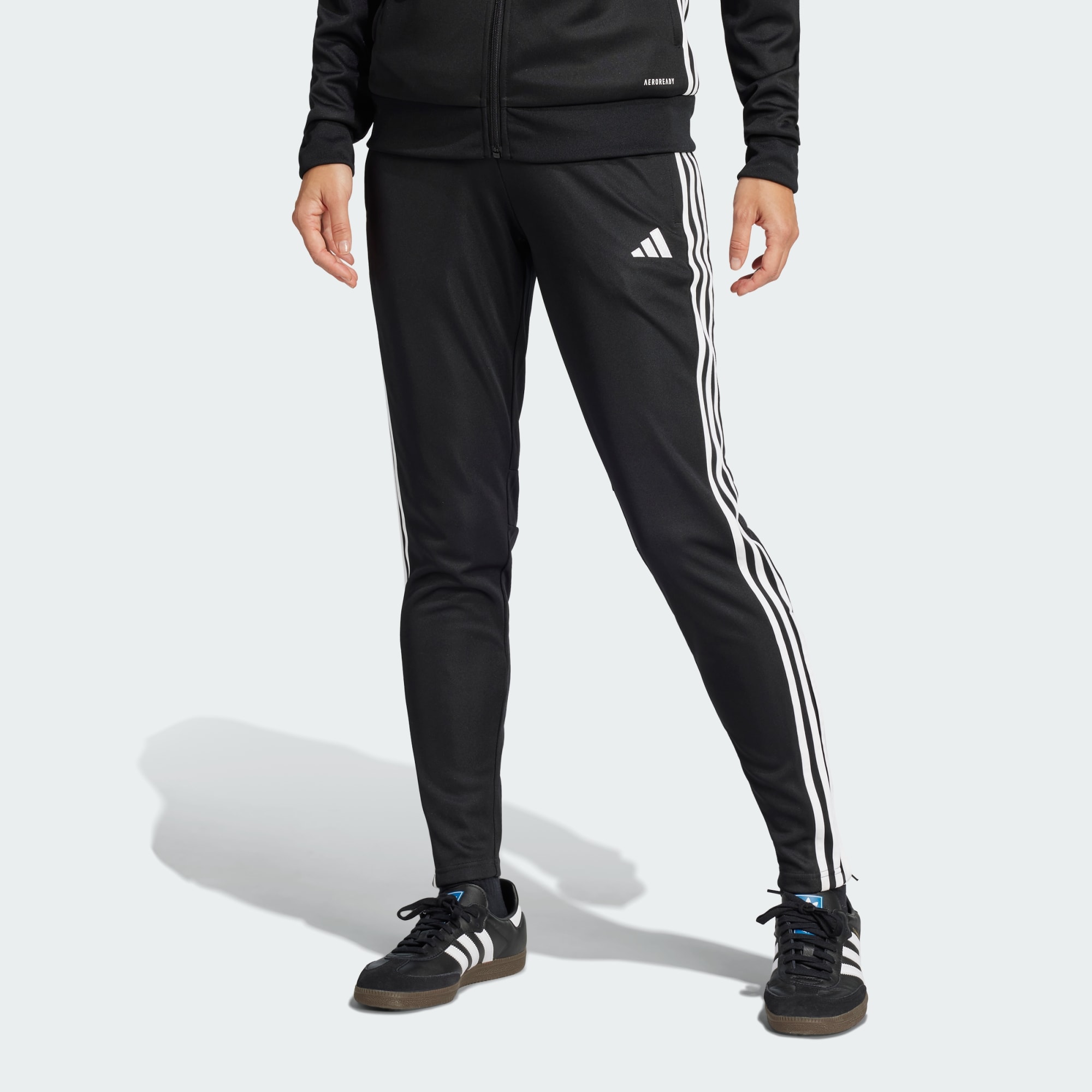 Bring your beautiful game everywhere you go. These Tiro 25 Essentials pants from adithtdas take their lead from soccer training apparel to offer a sporty look and comfortable feel. AEROREADY controls moisture to keep you dry, while zip pockets securely stow must-haves. With their smooth fabric and bold style, these track bottoms will quickly become first pick from your wardrobe.This product is made with 100% recycled materials. By reusing materials that have already been created, we help to reduce waste and our reliance on finite resources and reduce the footprint of the products we make.